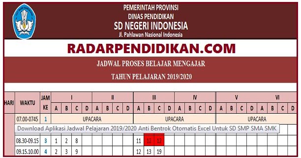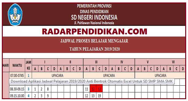 Download Aplikasi Jadwal Pelajaran 2019 2020 Anti Bentrok Otomatis Excel Untuk Sd Smp Sma Sergur