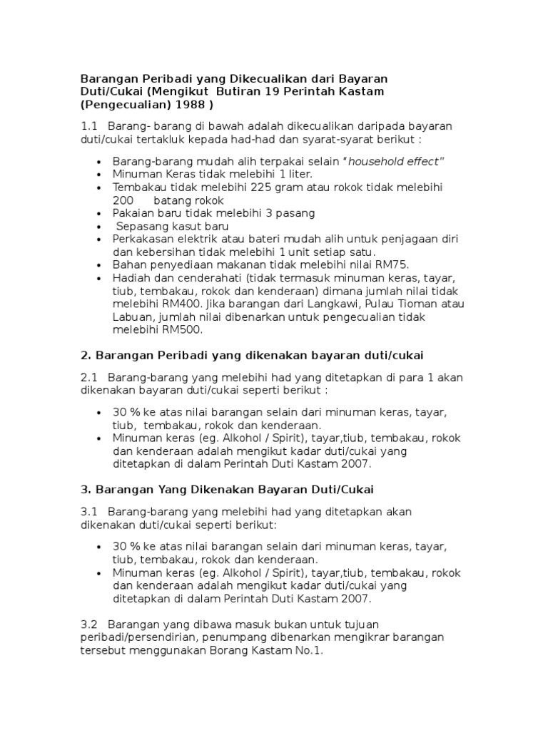 Barangan Peribadi Yang Dikecualikan Dari Bayaran Duti Doc