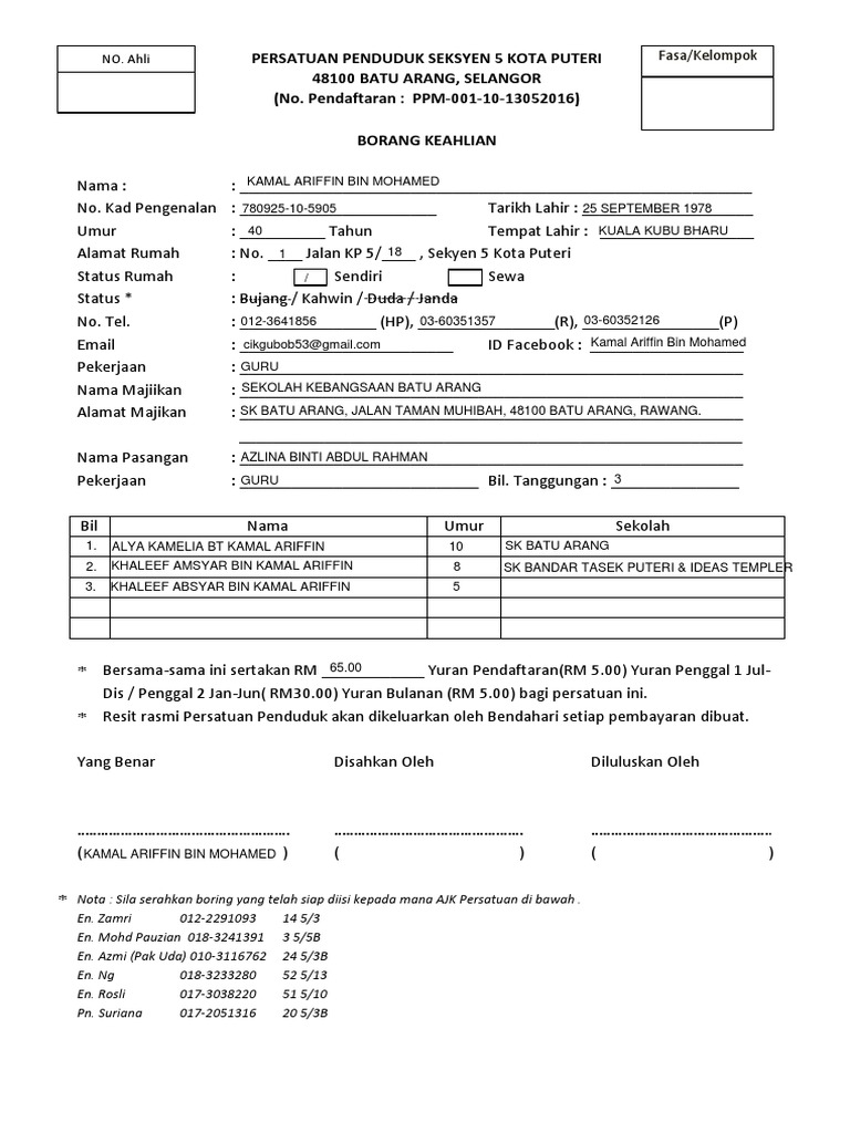 Kesumba Super Friend Bukit Beruntung Borang Keahlian Persatuan Penduduk