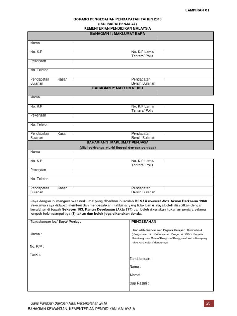 Borang Pengakuan Pendapatan Kementerian Pendidikan Malaysia 2019