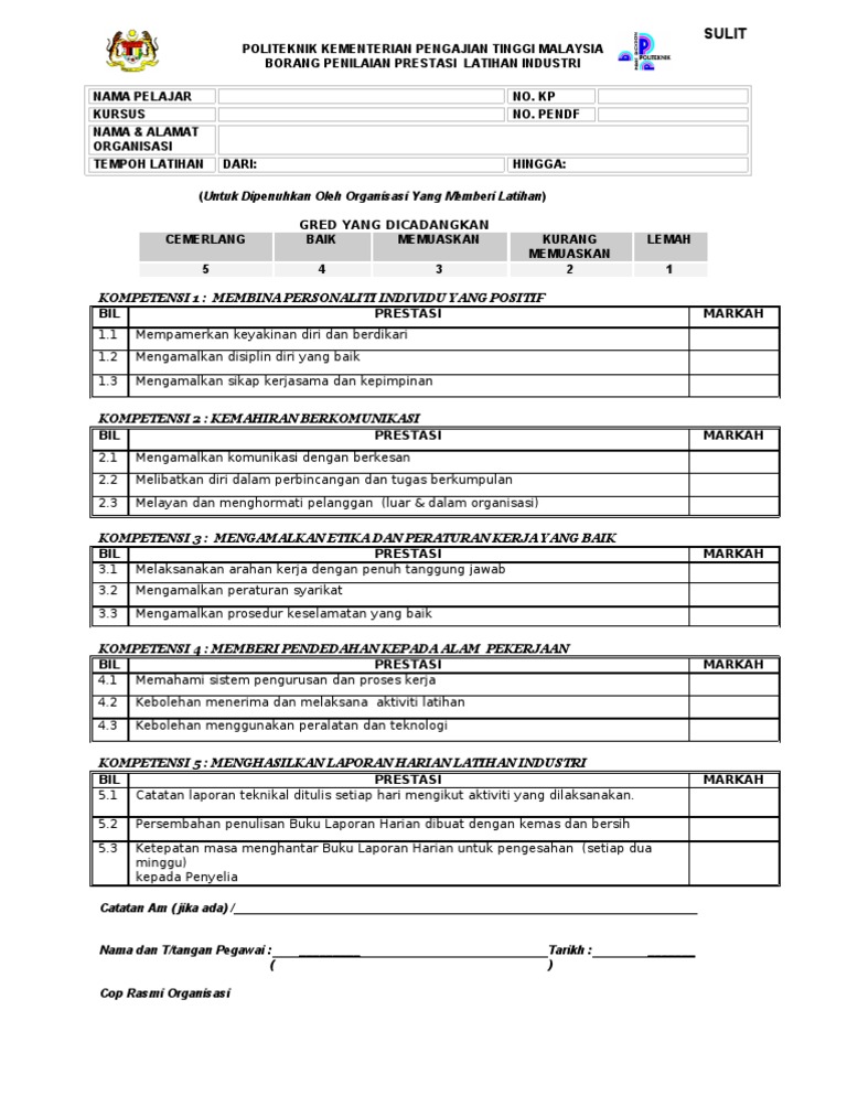 Doc Lampiran 1 Borang Penilaian Prestasi Napie Slipes Academia Edu