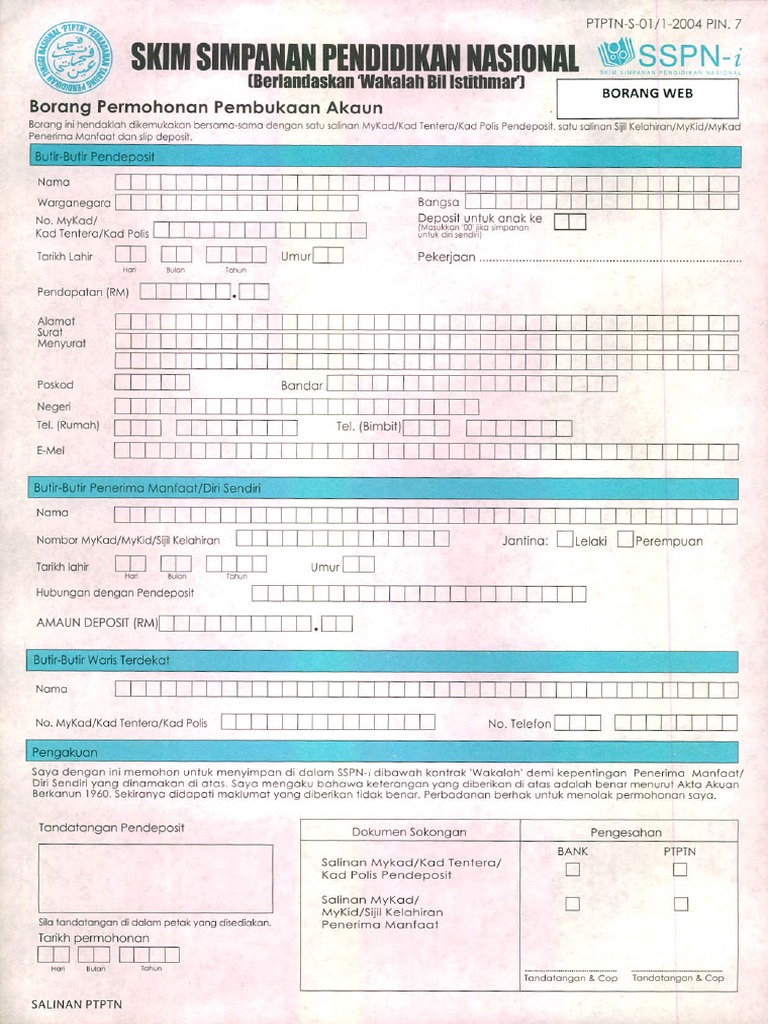Borang Permohonan Pembukaan Akaun Terkini Sspn I