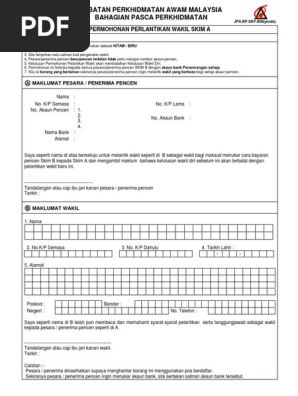 Jabatan Perkhidmatan Awam Malaysia Bahagian P Permohonan Perlantikan Wakil Skim A Arahan 1 Sila Pdf Document