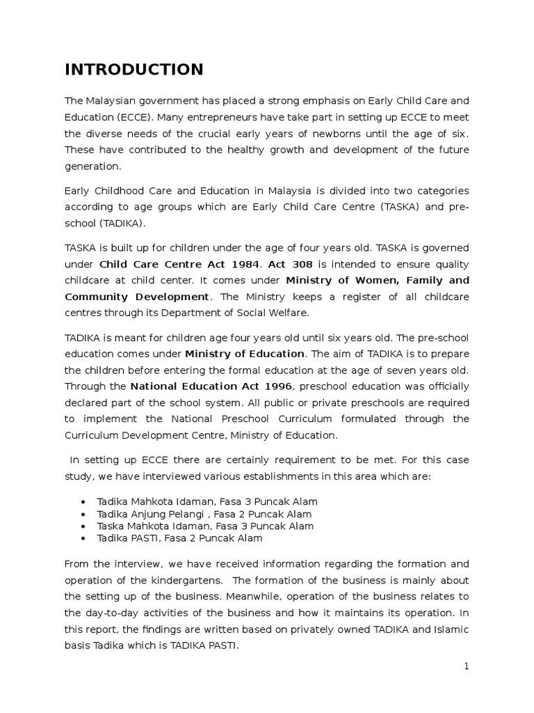 Formation Of Privately Owned Child Care Centre 2 Docx Child Care Relationships Parenting