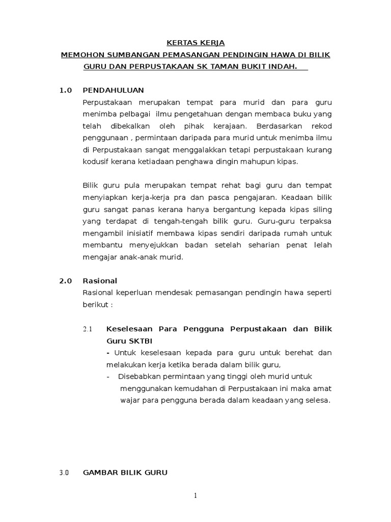 Kertas Kerja Mohon Pendingin Hawa Di Perpustakaan Dan Bilik Guru