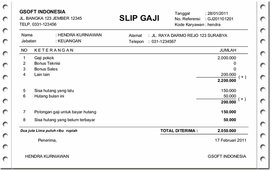 Contoh Slip Gaji Karyawan Belajar Cv Kreatif Microsoft Excel