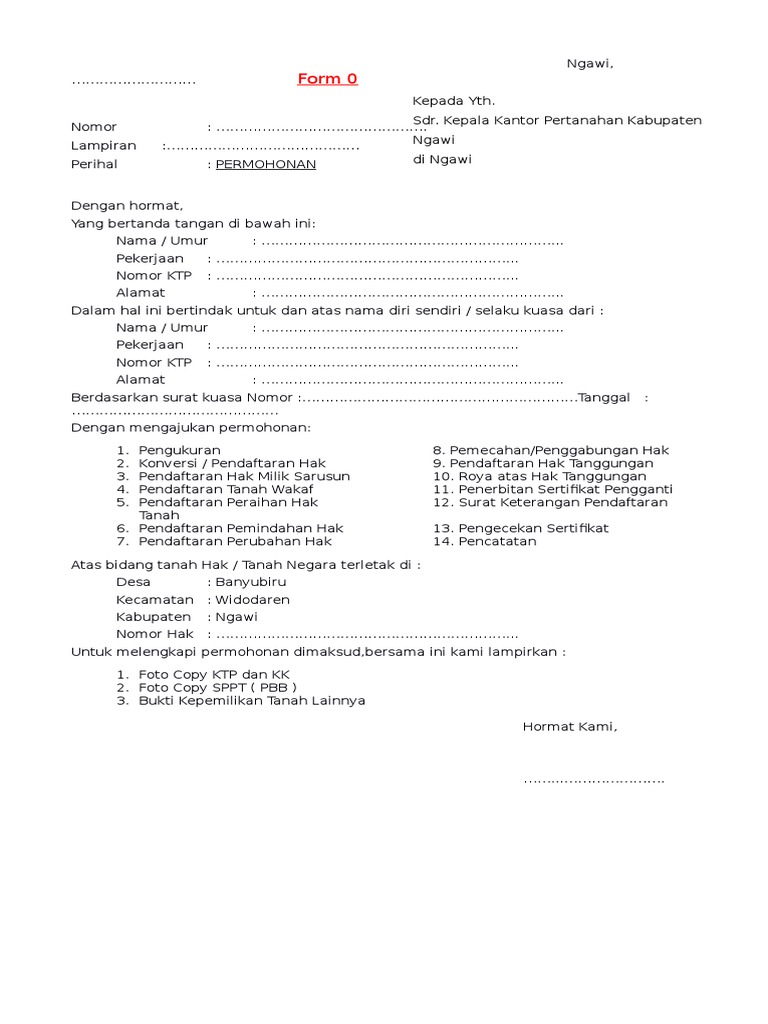Surat Permohonan Sertifikat Tanah