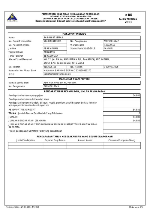 Coretan Peribadi Cukai Pendapatan 2013