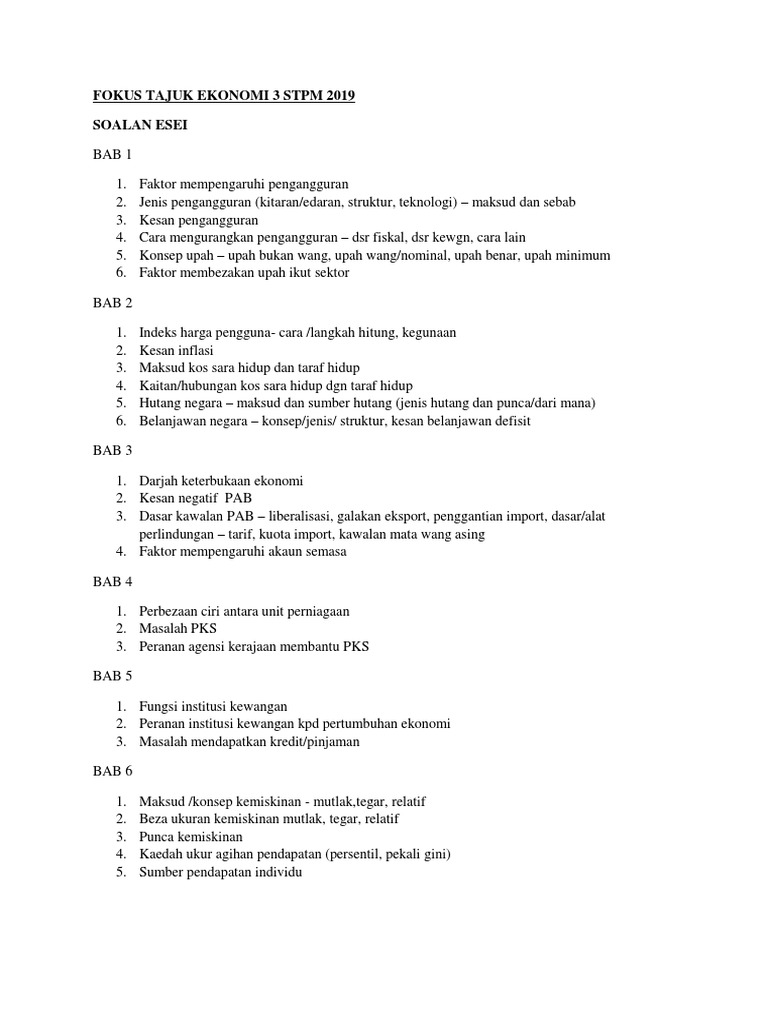 Fokus Tajuk Ekonomi 3 Stpm 2019