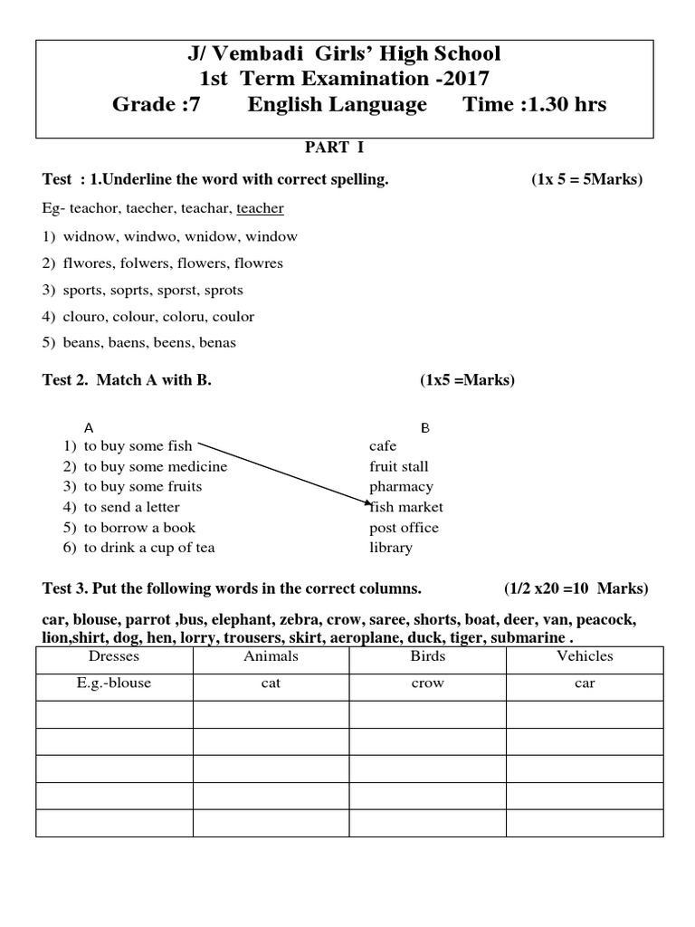 Grade 7 1st Term English 2017 Vembadi Girls Robot Technology