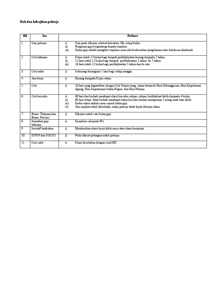 Hak Dan Kebajikan Pekerja