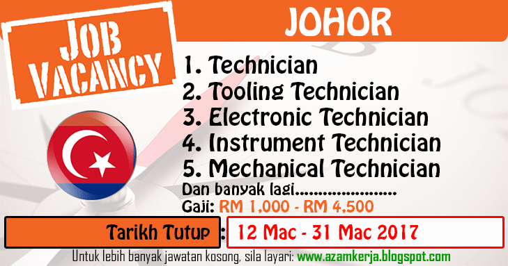 Jawatan Kosong Terkini 2017 Dan 2018 Azam Kerja Jawatan Kosong Technician Di Johor Mac 2017