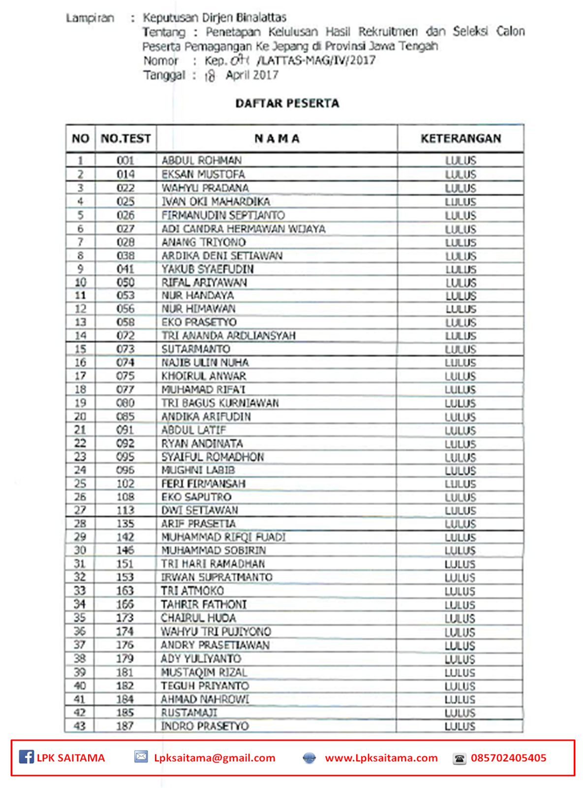Hasil Medical Check Up Seleksi Magang Kerja Jepang Di Disnakertrans Semarang