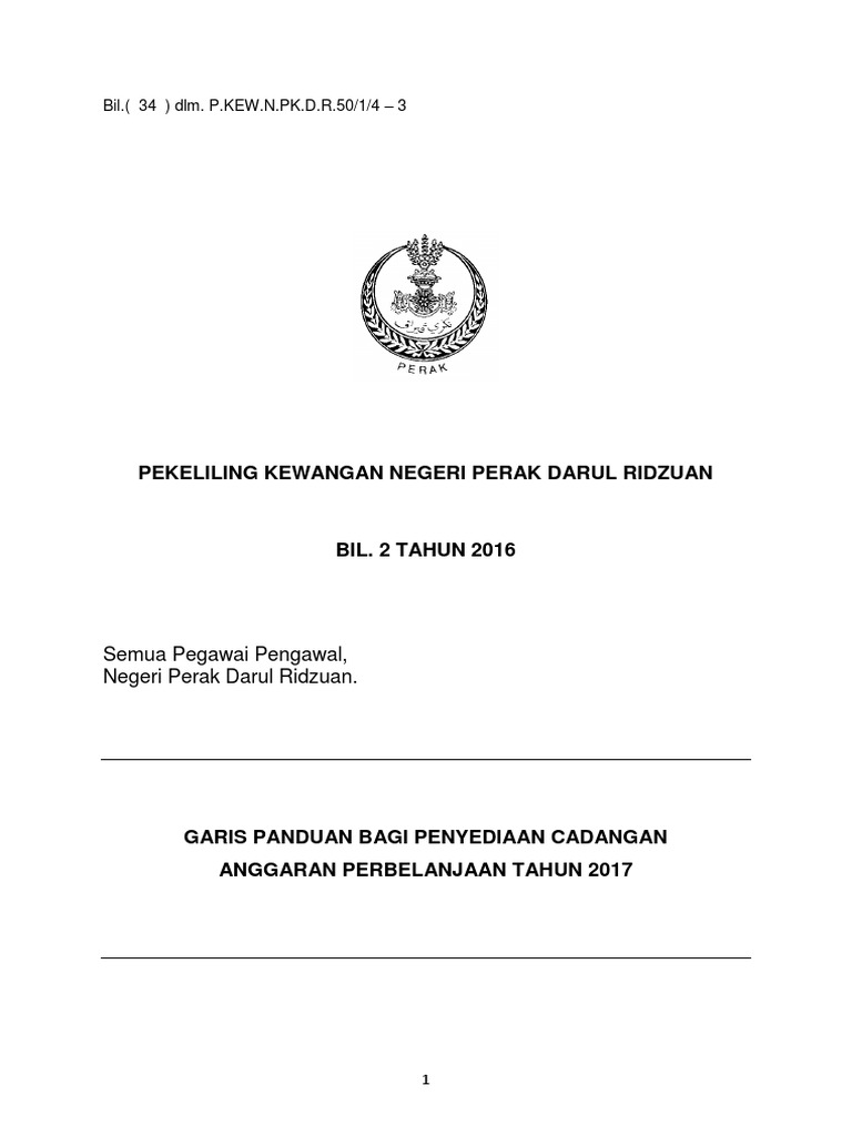 Garis Panduan Bagi Penyediaan Cadangan Anggaran Perbelanjaan Tahun 2017 Pdf