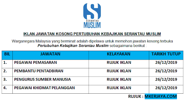 Iklan Jawatan Kosong Pertubuhan Kebajikan Serantau Muslim Pelbagai Jawatan Dibuka Sehingga Januari 2020 Malaysia Kerjaya
