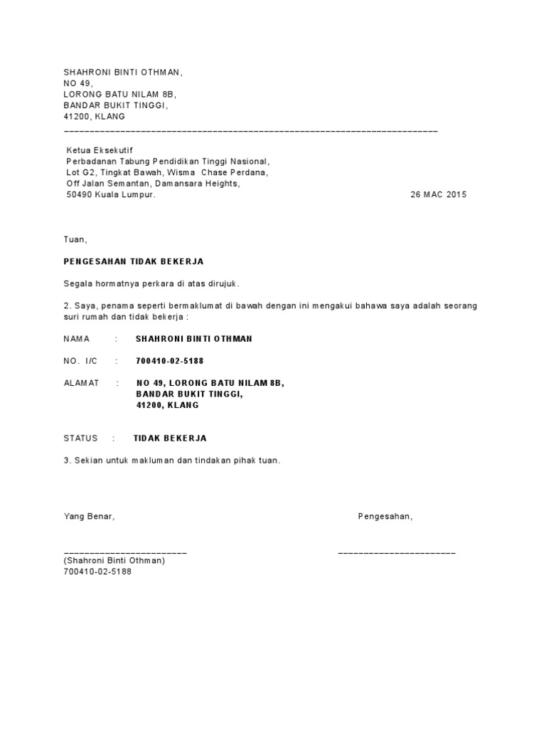 Surat Rasmi Ibu Tidak Bekerja Rasmi J