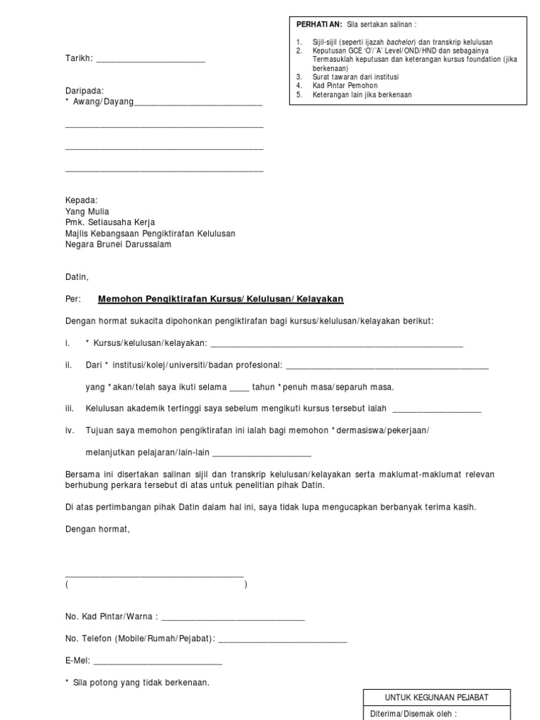 Memohon Pengiktirafan Kursus Kelulusan Kelayakan Perhatian Sila Sertakan Salinan