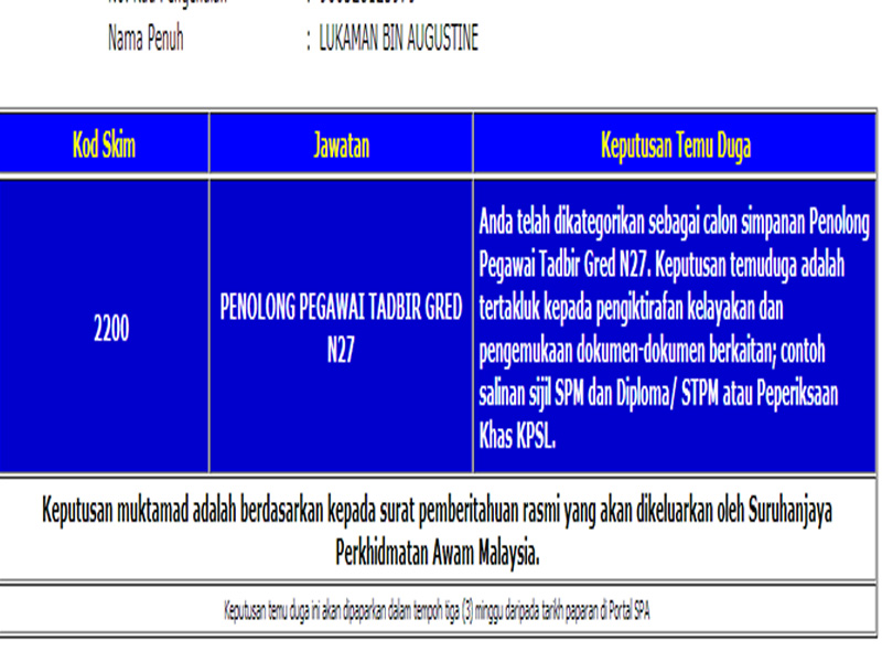 Semakan Spa Keputusan Peperiksaan Dan Temuduga Permohonan My
